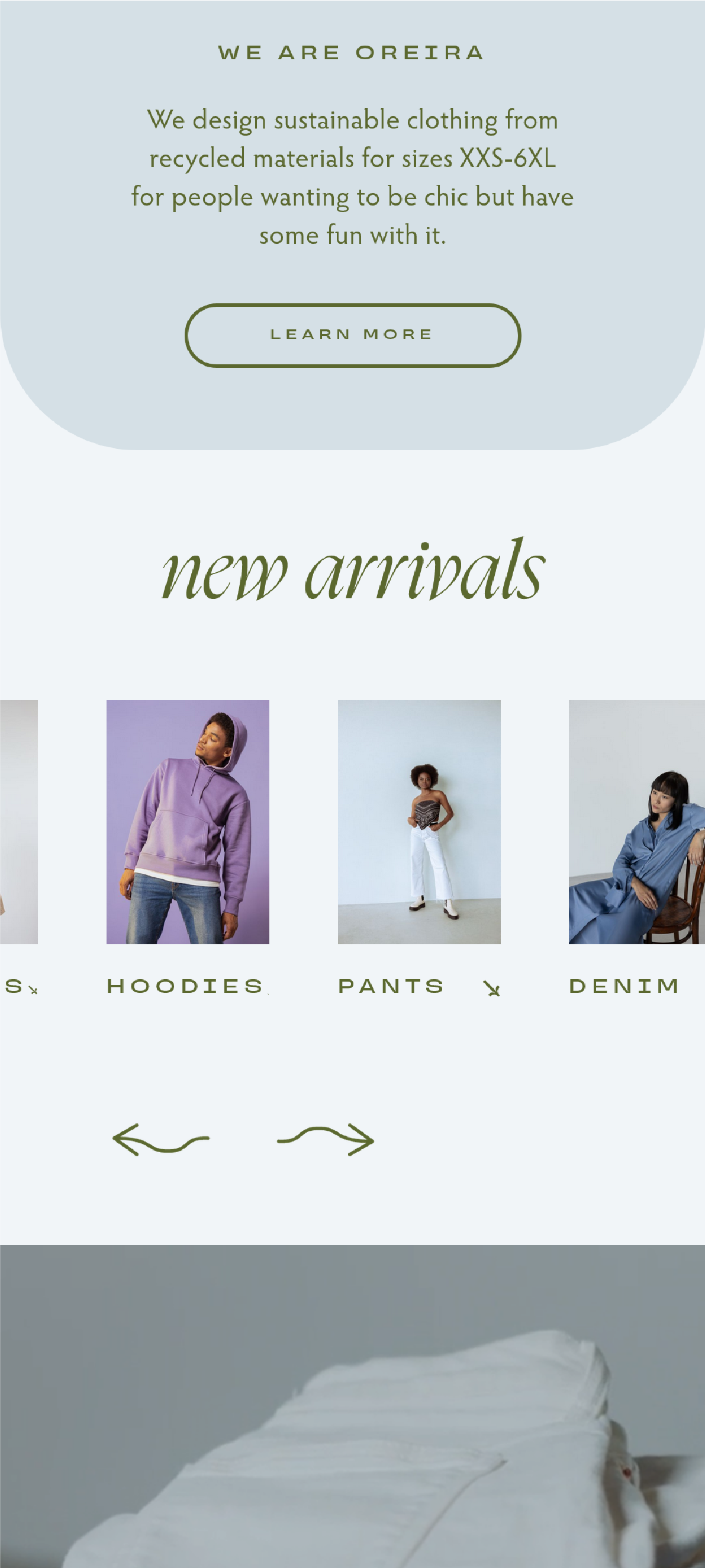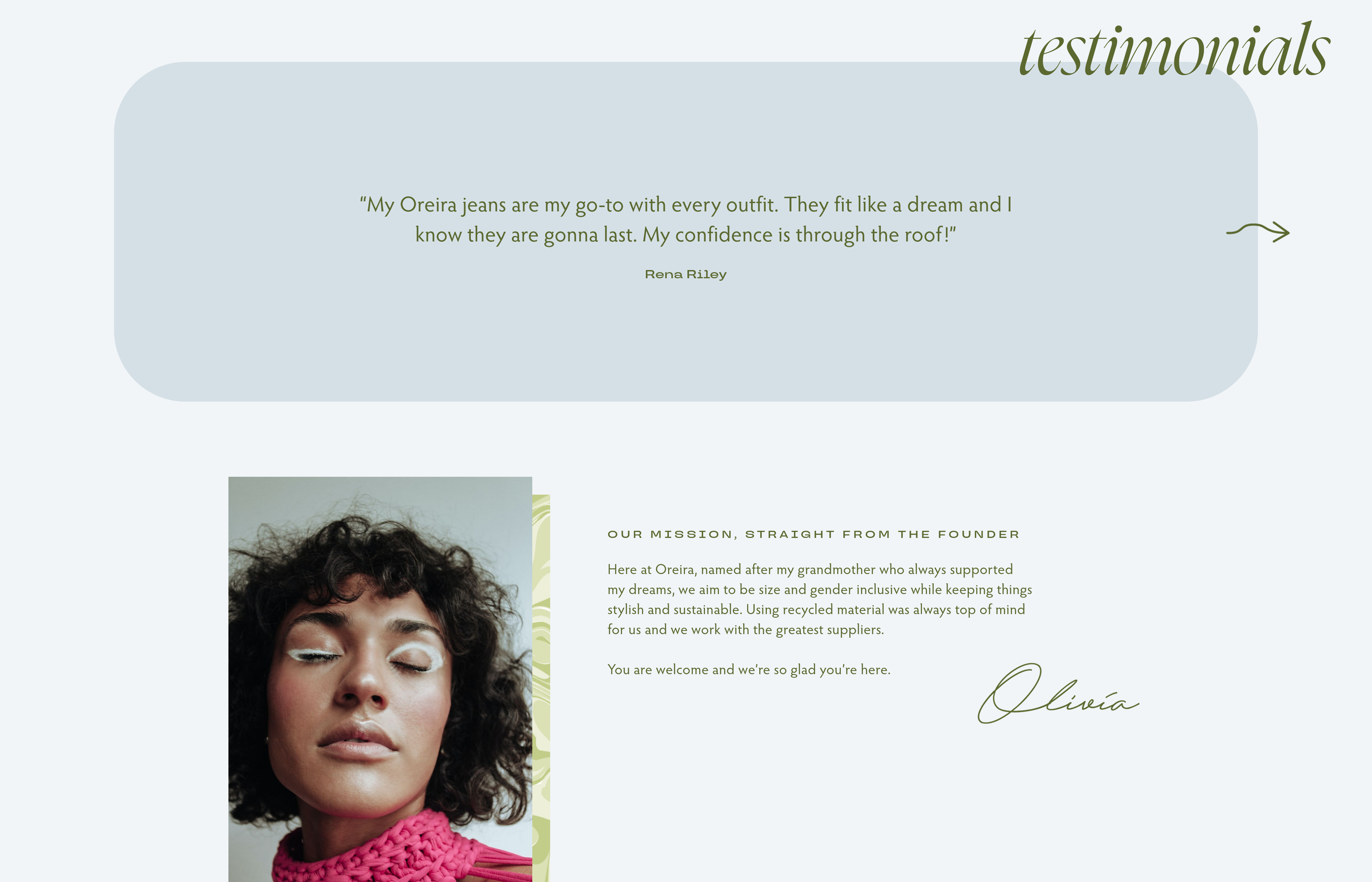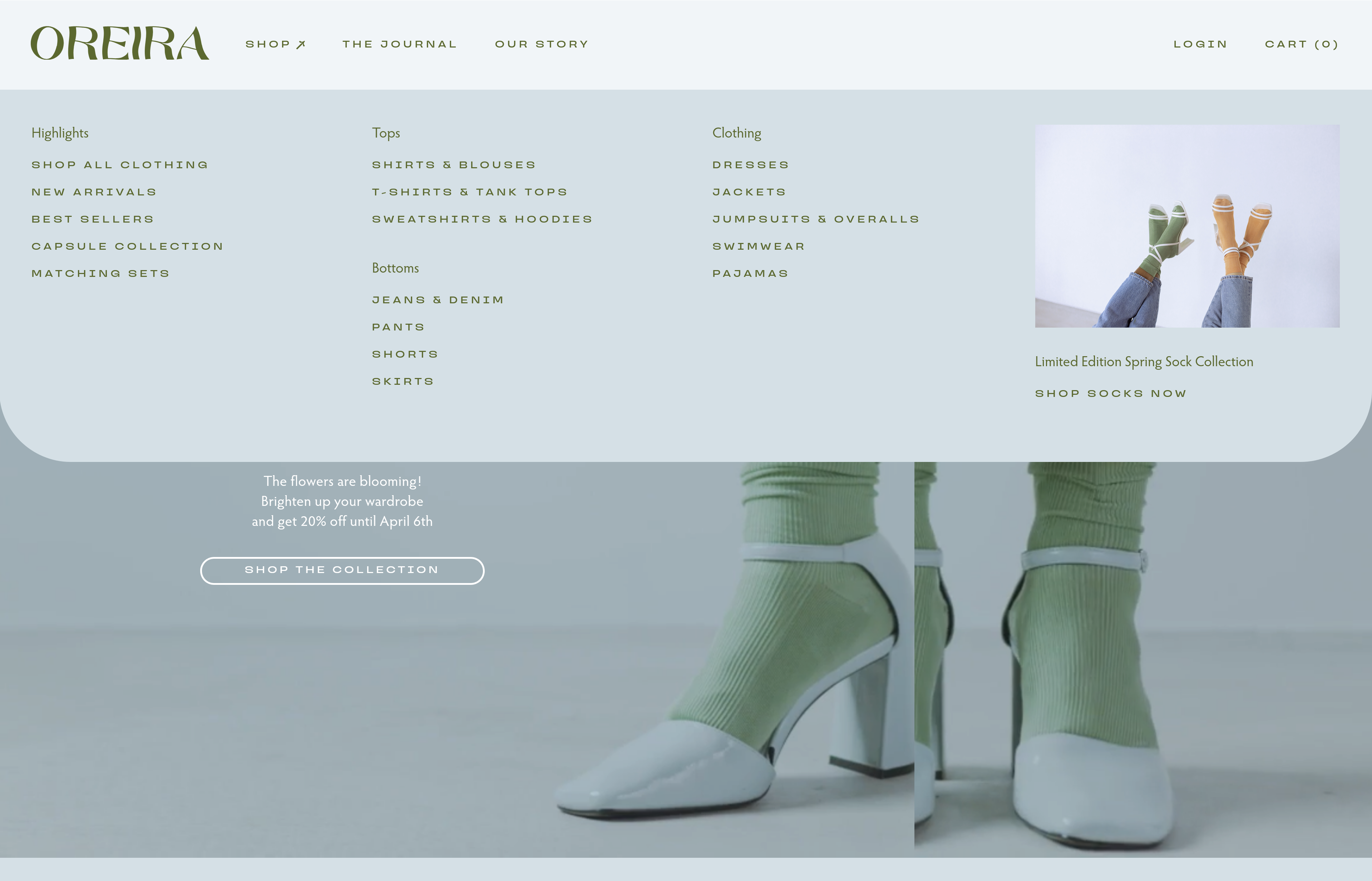 Oreira is a personal passion project I created to learn the Webflow platform. I was inspired by a monthly drop from Death to Stock with vibrant, diverse photography and video that made me think of a modern, unisex clothing company. The collection felt like spring and new beginnings, and I knew I had to create something for it.